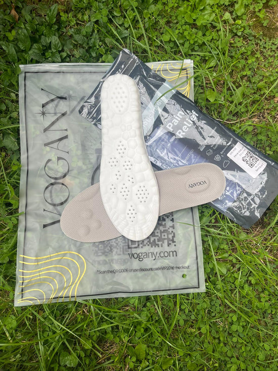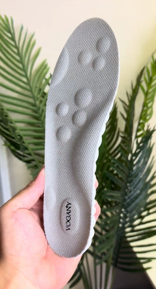 Indlægssålen Vogany fordeler belastningen på en balanceret måde for effektivt at lindre smerte. Dens ergonomiske design støtter fodens naturlige bevægelse, mens indsatser målretter de følsomme områder som hælen og foden, på samme måde som akupressur.